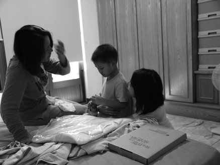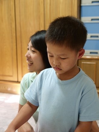 此行目的是因為頎修媽媽的小女兒即將滿月了,我準備了睡袋和給頎修的生日書去看她,心裡其實很想見的是頎修,好久不見,我在想他看到我是不是會害羞躲起來呢?一進門就聽到大哭的聲音,原來是因為我打手機給頎修媽,手機鈴聲把正在午睡的頎修吵醒了,沒睡飽的他心情不好,不過我很高興他沒有因為我的接近就逃跑了