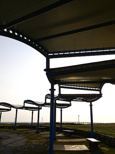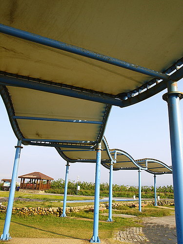 新竹市政府在漁港設置了幾座希臘風地標,成為大家爭相拍照的目標,連即將結婚的新人也不能免俗,一路上我們就看到三對新人在此拍照,好像都是同一家攝影公司,想必到時候大家的婚紗照應該都很雷同吧!