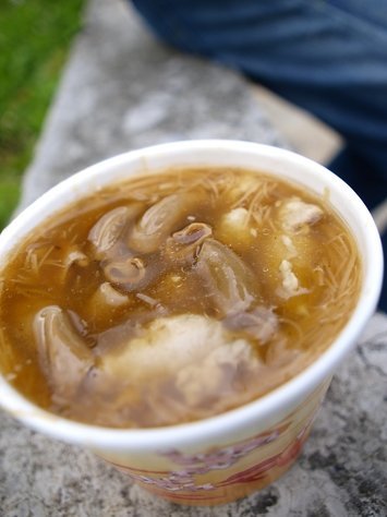 這碗麵線特別的是裡面放的是小腸不是普遍的大腸喔!份量還OK,味道也不錯,吃了這一碗全身暖呼呼,我們就往老街走去囉!後來吃了魯肉飯和貢丸湯都忘了拍照真的很可惜,滷肉飯裡有加筍乾,肥肉其實也不會很多,我挺喜歡的。貢丸湯的湯底是蘿蔔熬的,所以整碗湯呈現乳白色,蘿蔔幾乎入口即化,如果以後有機會,我一定會再度光臨品嚐的