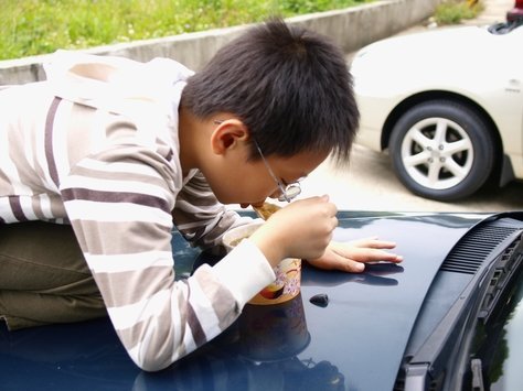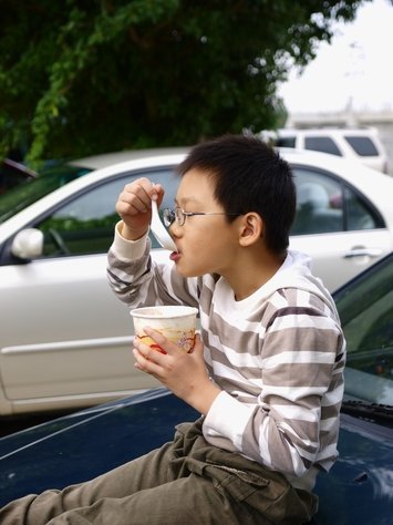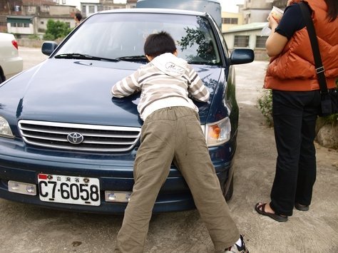 竟然趴在車上吃,我想虹吟爸應該是不在意車子有任何的刮痕吧!不然怎麼能夠忍受這種行為咧!
