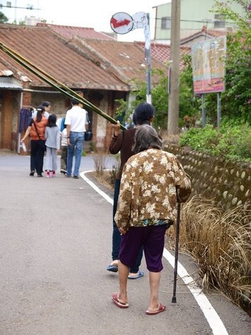 因為忙拍照,我落在大家後面(沒人理我,大家直直往前走),跟在緩步前行的老者後方,感覺有點錯亂,以為台灣的觀光休閒這麼興盛,應該到處都是穿著亮麗的人群。我忘了湖口畢竟還算是個鄉下吧!雖然觀光的旅客這麼多,這裡還是會有當地的居民啊!即便當地成為觀光聖地,他們還是過著不變的生活吧!