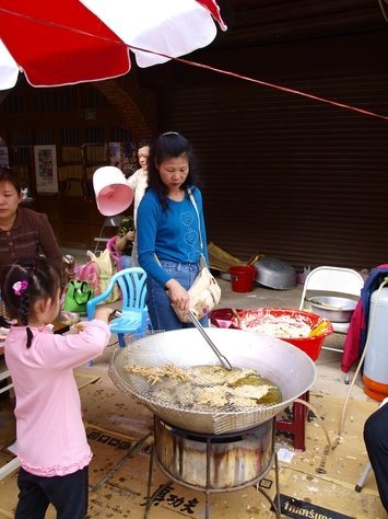 買了一個炸芋頭絲大家分著吃,裡面加了一些香菜、胡椒做調味,炸的酥酥香香的,十分美味