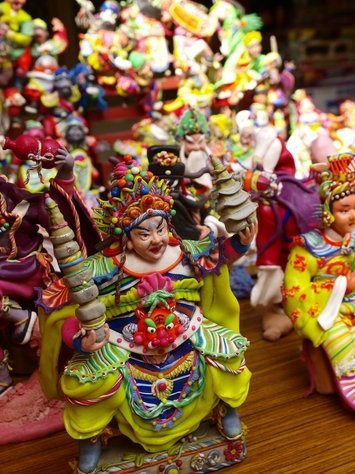 熱熱鬧鬧的捏麵人,老闆捏的都是一些神明,動作表情相當生動,而且也很細緻