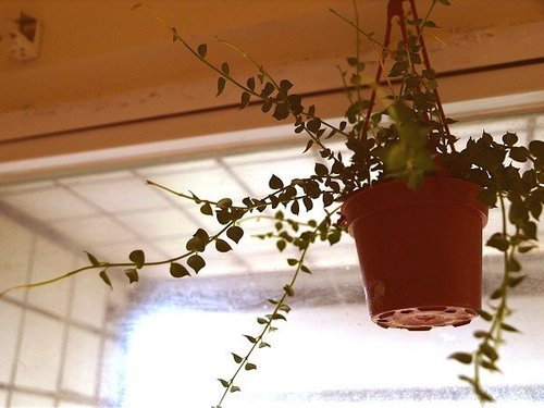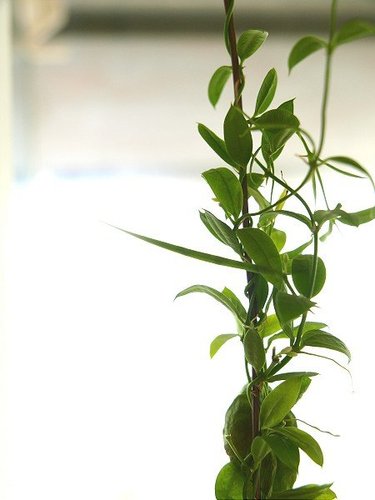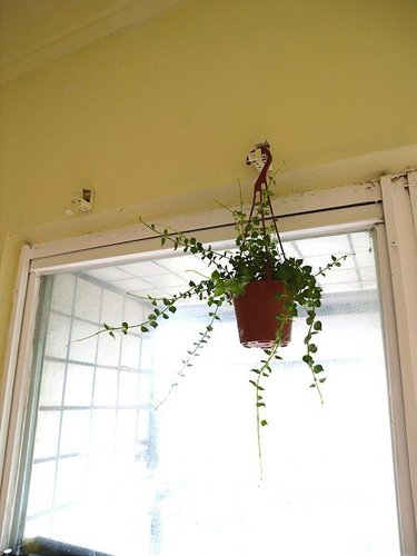 讓她自然的垂掛下來,透著陽光,襯著我辛苦刷白的窗框,真的是太美啦!讓我經常忍不住停下腳步欣賞她