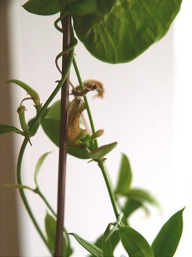 發現一條尖尖的東西沒有?就是她的果實喔!買的時候沒特別注意,也不知道是不是買回來後才長出來的,發現後覺得特別興奮哩!上網查資料發現說,等果實成熟後繃開會有像蒲公英一般的白色羽毛種子,被風一吹就隨風飛舞到處旅行,光是想像就覺得好美喔
