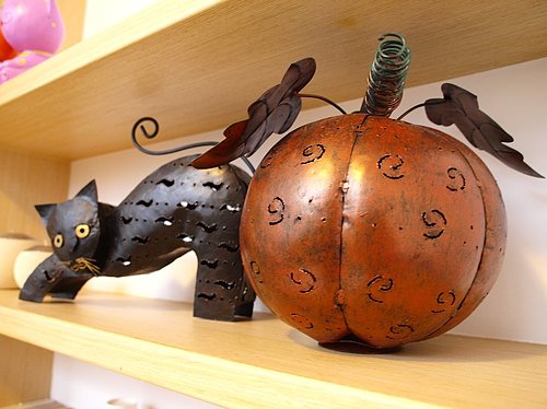 看到那隻伸懶腰的黑貓了嗎?如果在它的身體裡點上蠟燭就可以投射出美麗的燭光唷!我也有一隻和它異曲同工的貓咪喔!真想將他們配成一對啊!