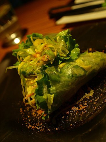 手捲很清爽清脆 裡面包有一隻蝦子 整個蔬菜嘗起來很多汁