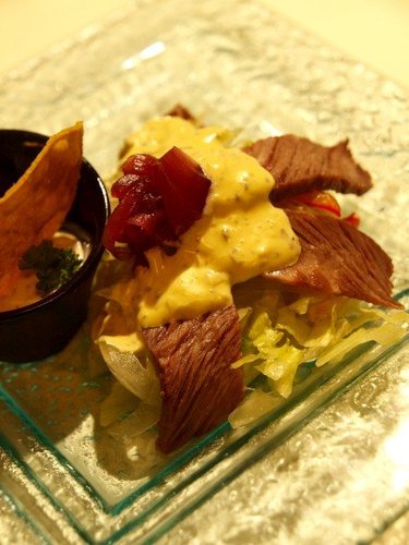 老公點的沙拉--義式牛肉沙拉(看起來肉肉很好吃,但是底下的生菜太水了一點)