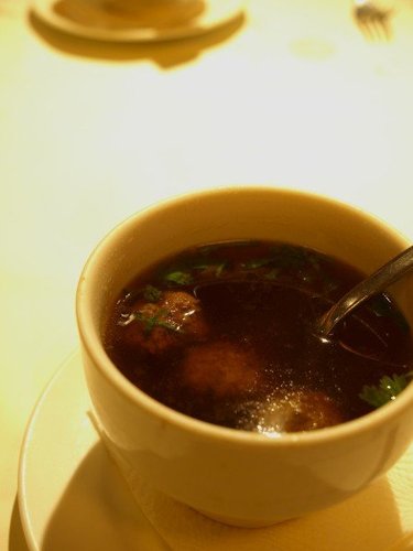 老公的濃湯--法式洋蔥牛肉丸湯(老公說湯很美味,牛肉丸吃起來有很重的香料味,但稱不上好吃,他還比較喜歡IKEA的牛肉丸)