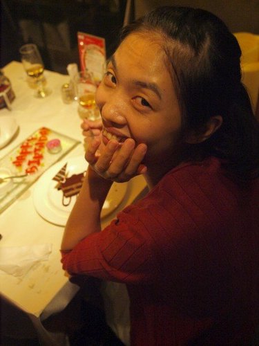 笑得好燦爛的老公喔!我以前一直覺得他長的像張信哲,這張照片看起來好像還有點樣子